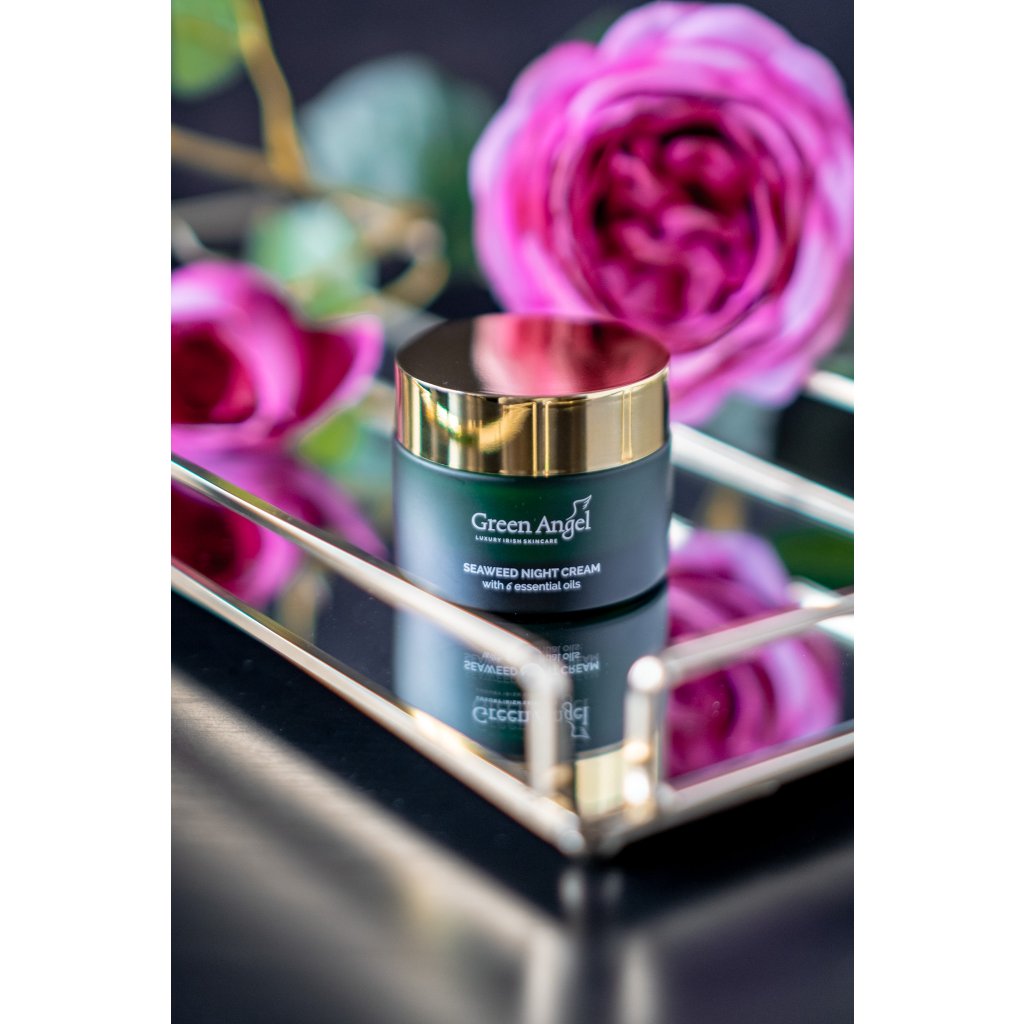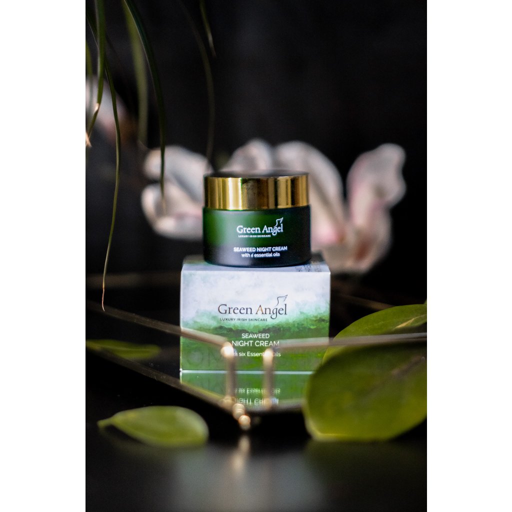 Noční krém se šesti esenciálními oleji obsahuje směs čtyř organických, ručně sklizených irských mořských řas z Atlantského oceánu bohatého na živiny v kombinaci s esenciálními oleji, které pomáhají vyživovat a hydratovat pokožku během noci.